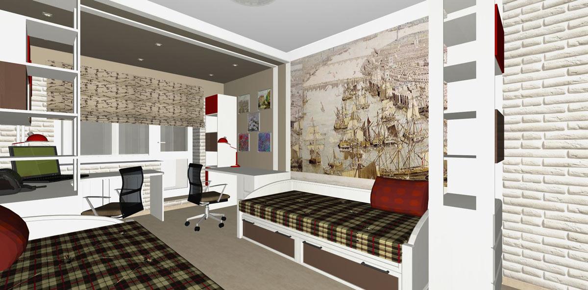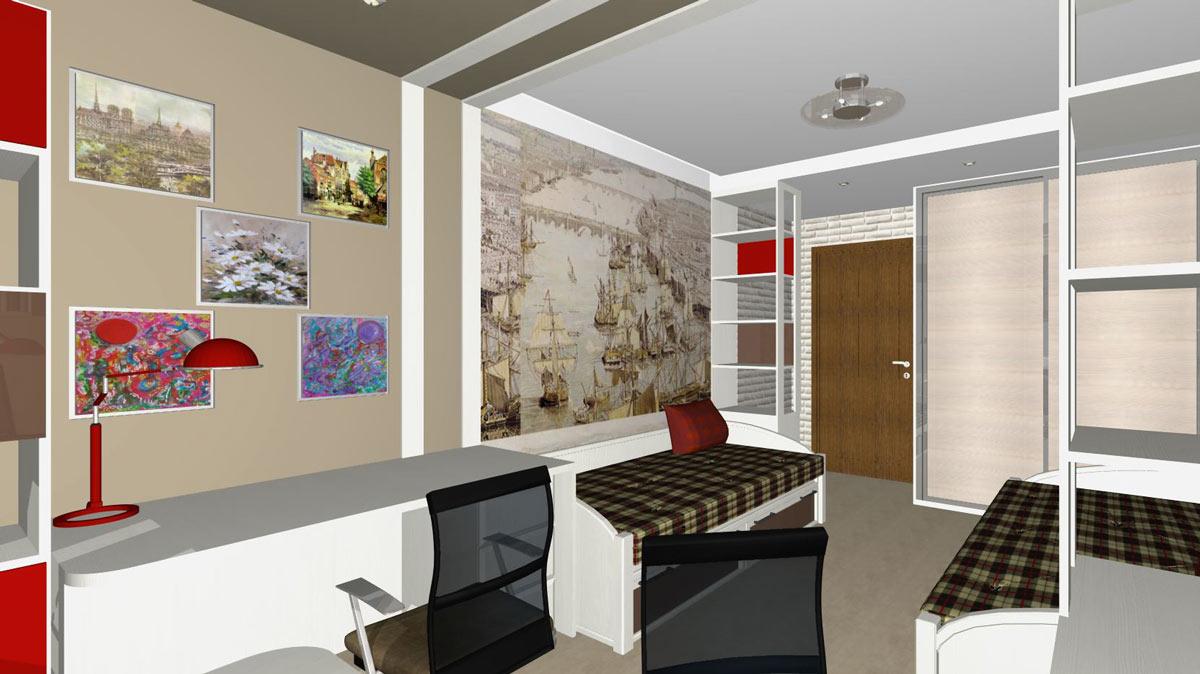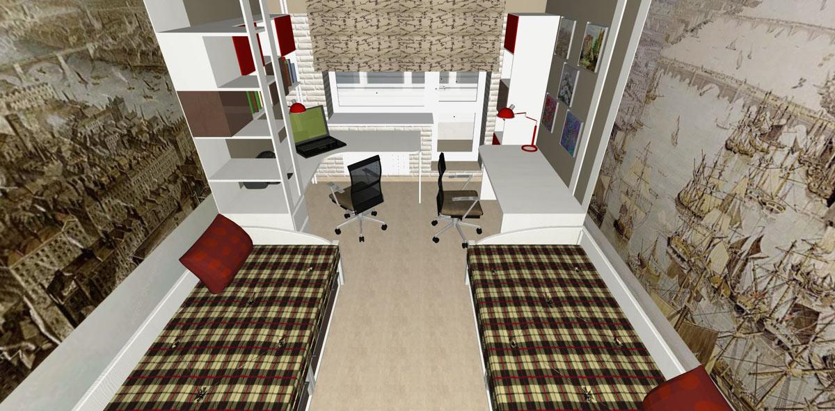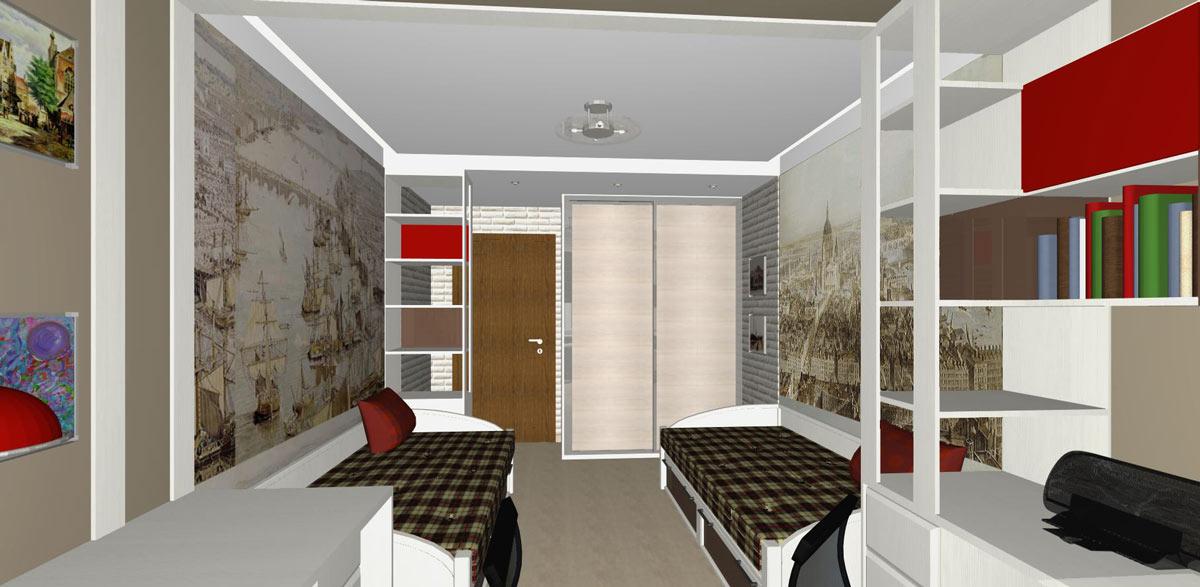Проект интерьера детской площадью 17м2 для двух мальчиков.