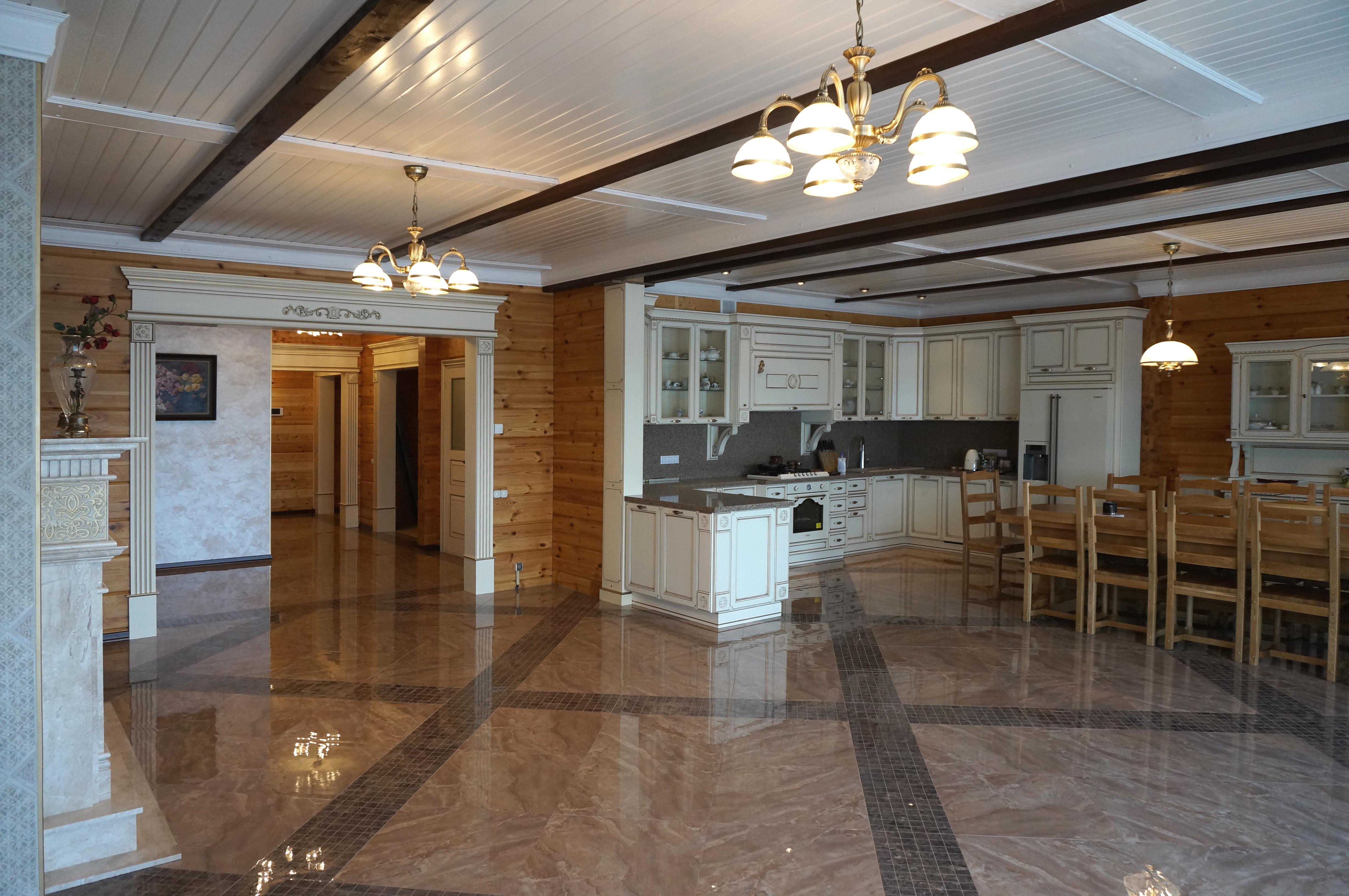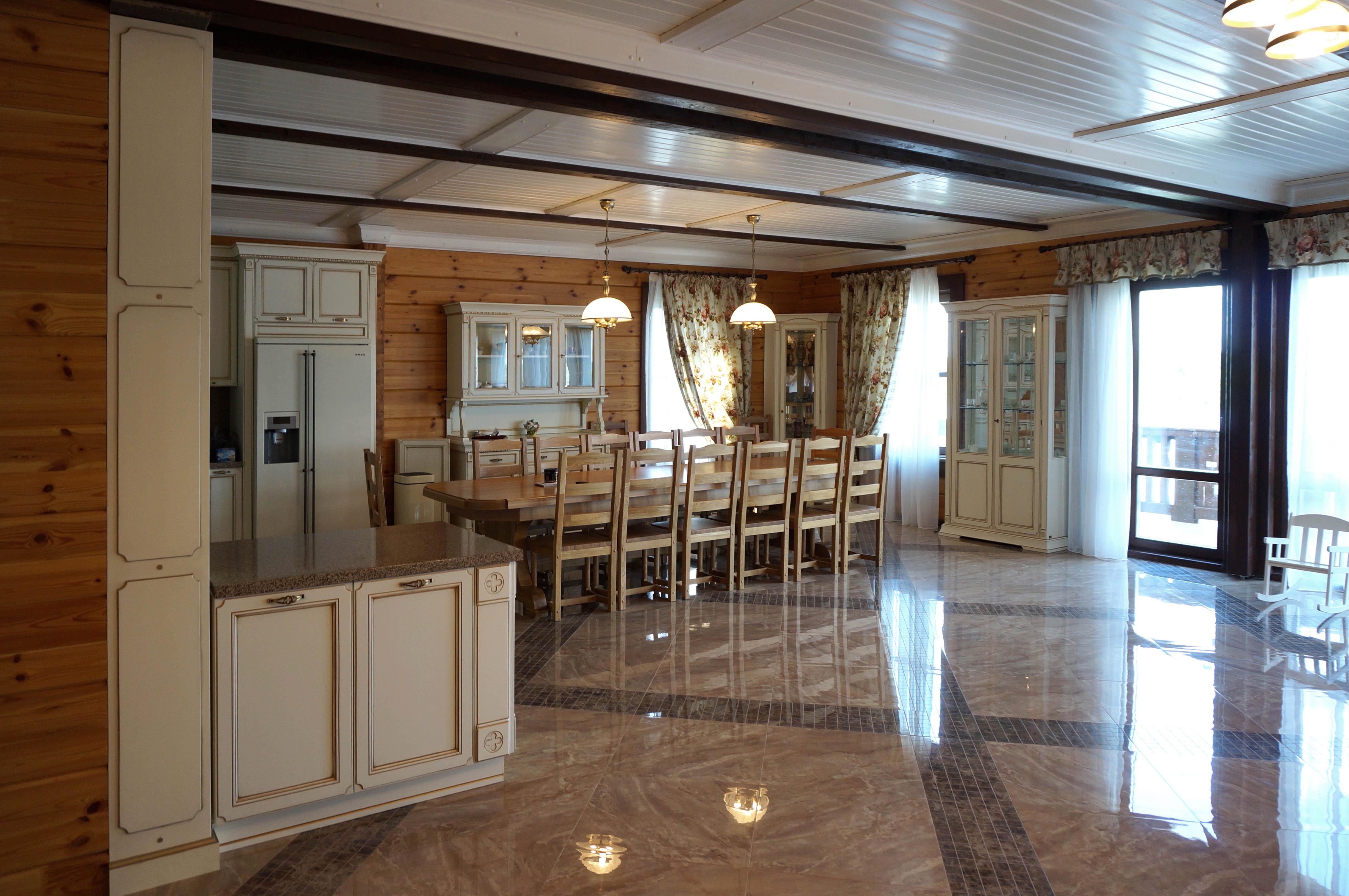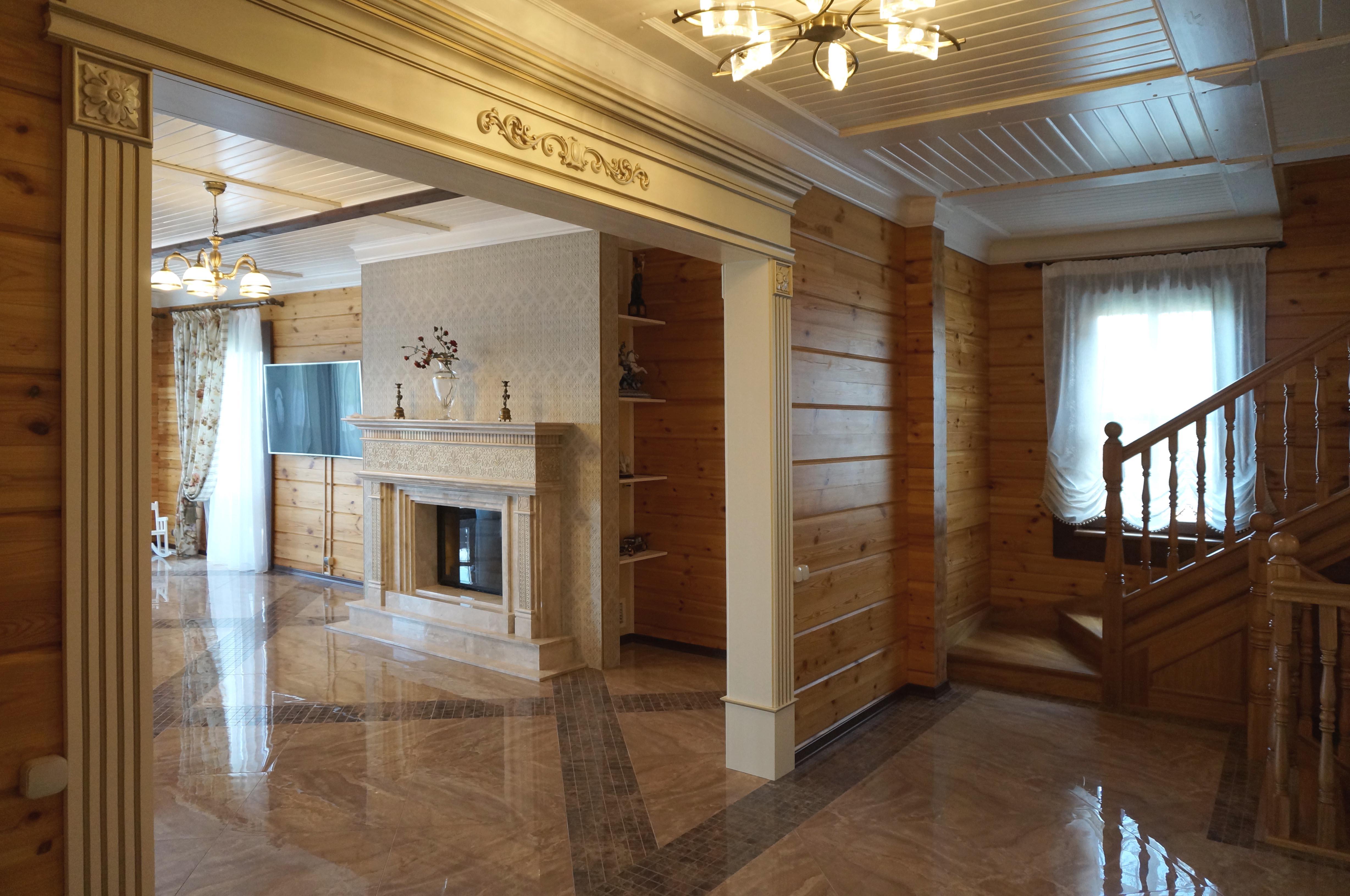 Интерьер загородного дома из клееного бруса. Нижегородская область.