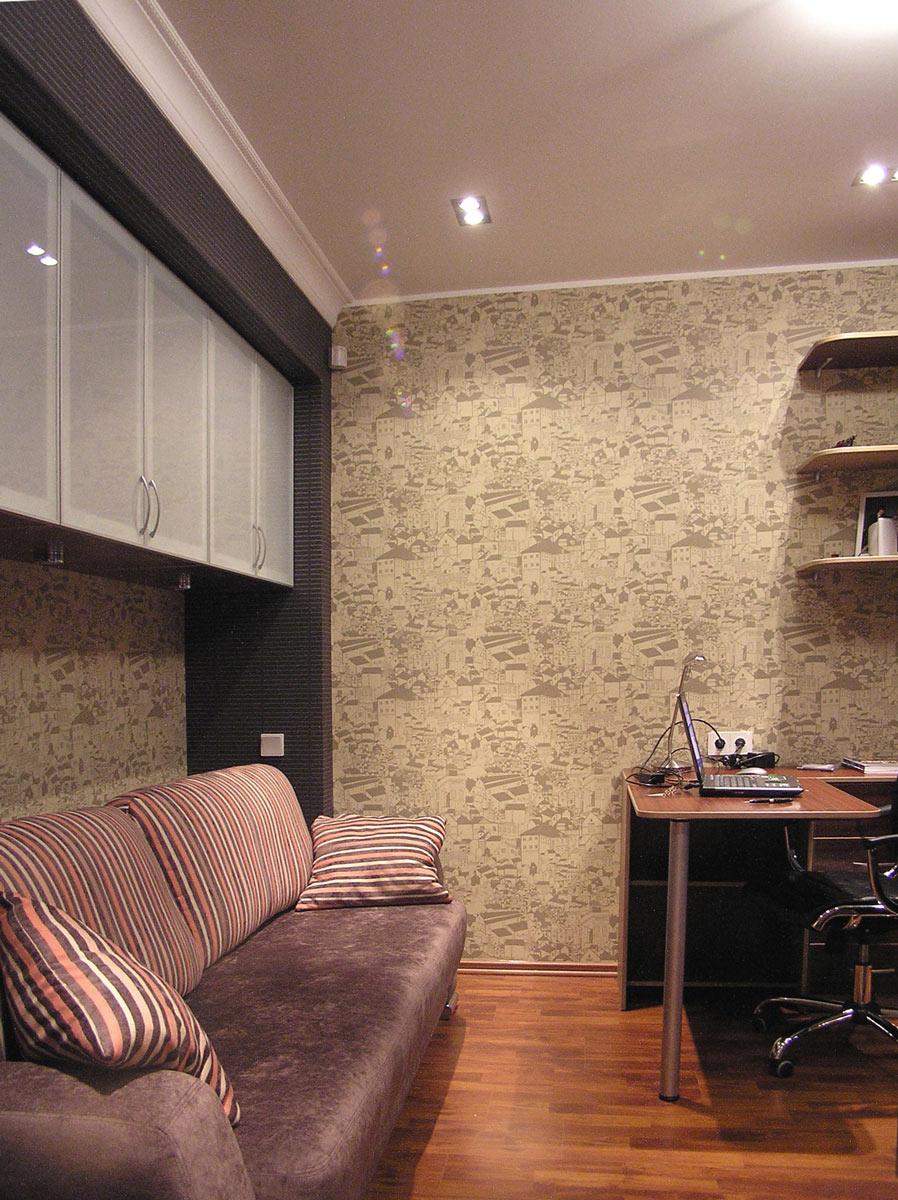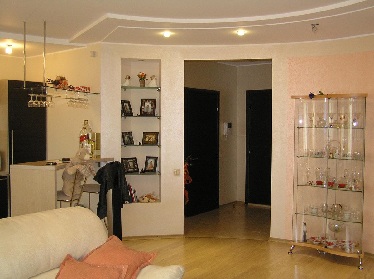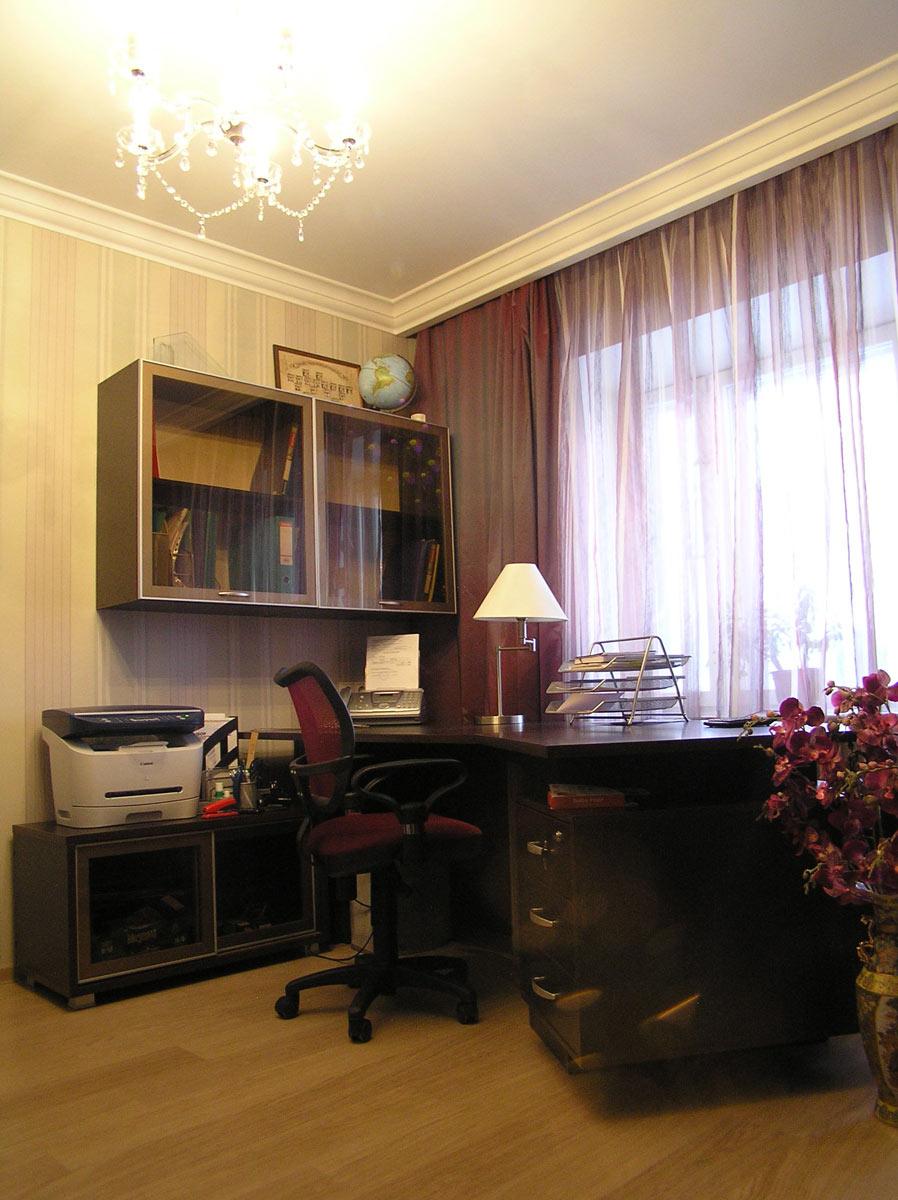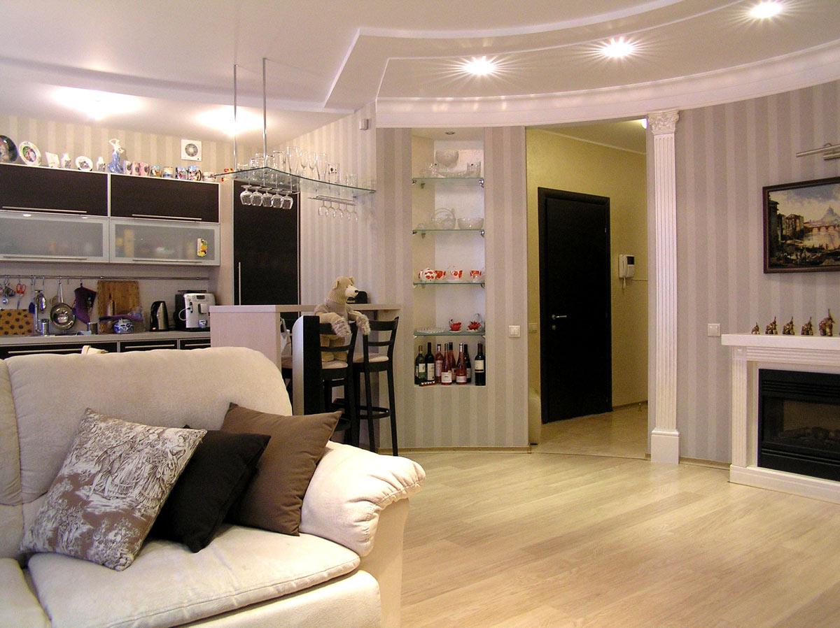 Декор и реконструкция интерьера кухни-гостиной, кабинета и спальни в квартире на ул. Генкина.