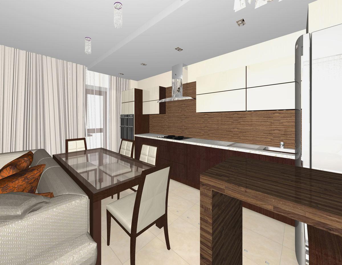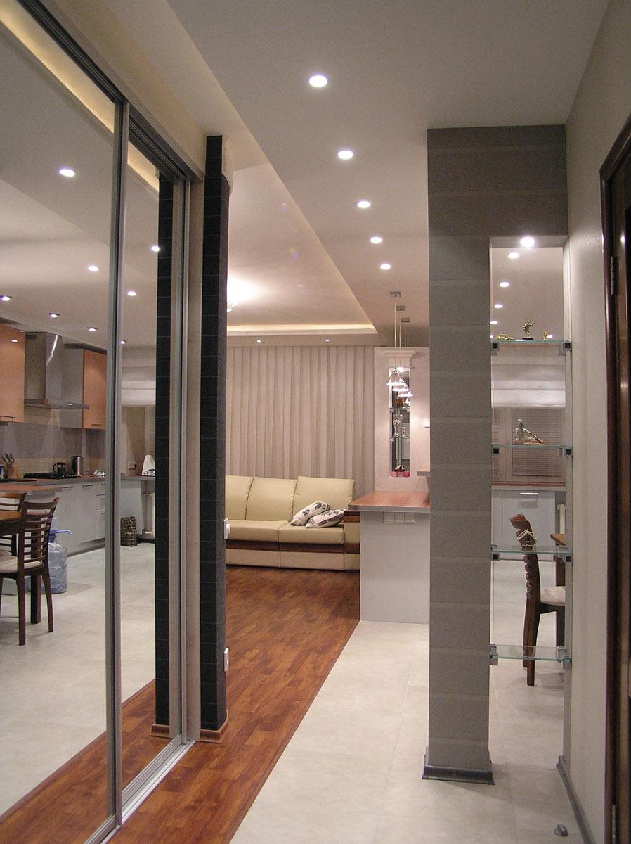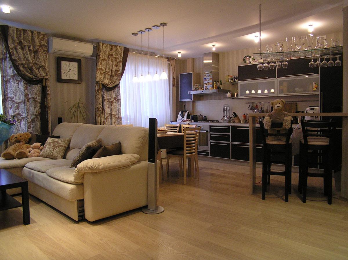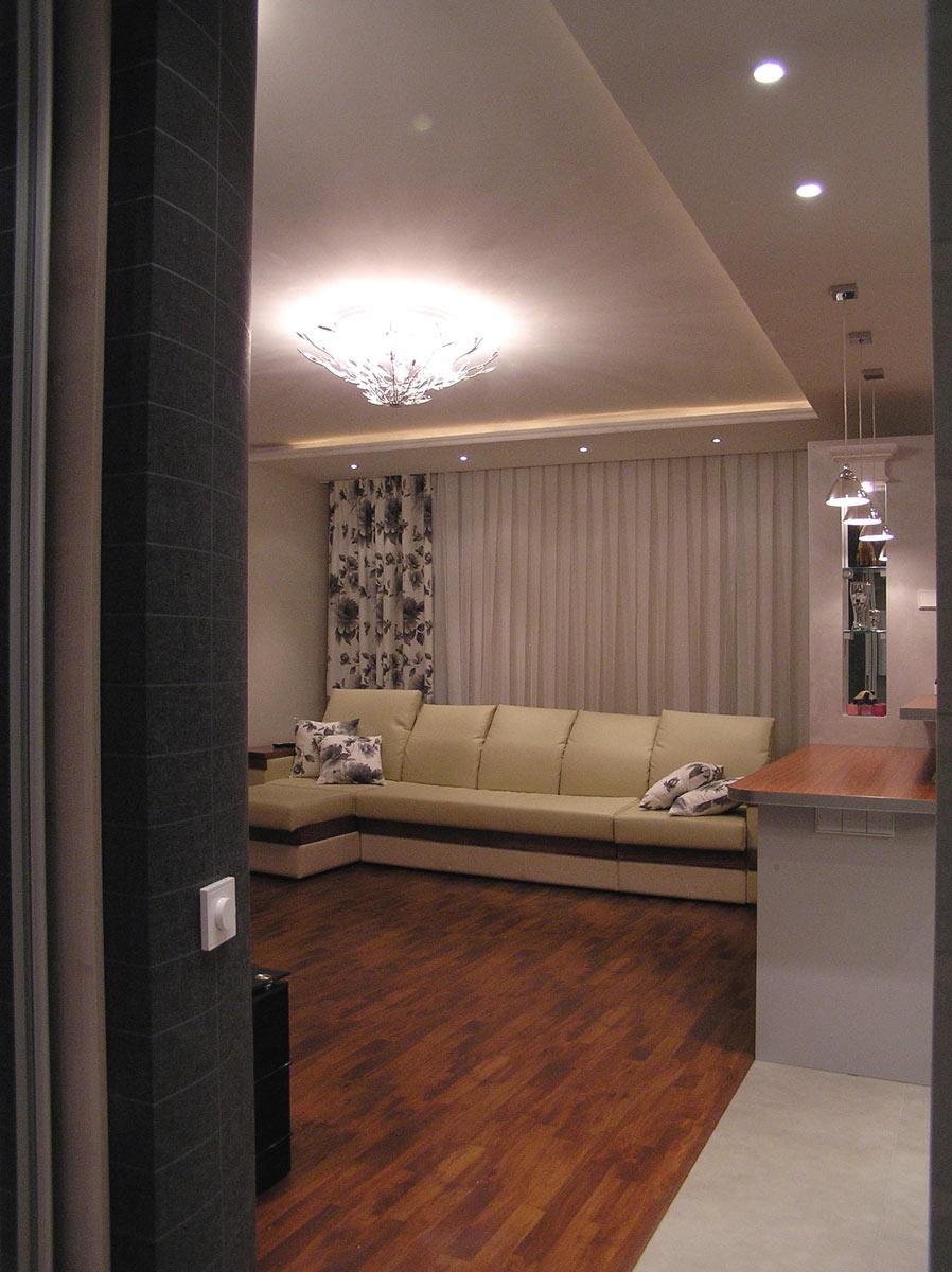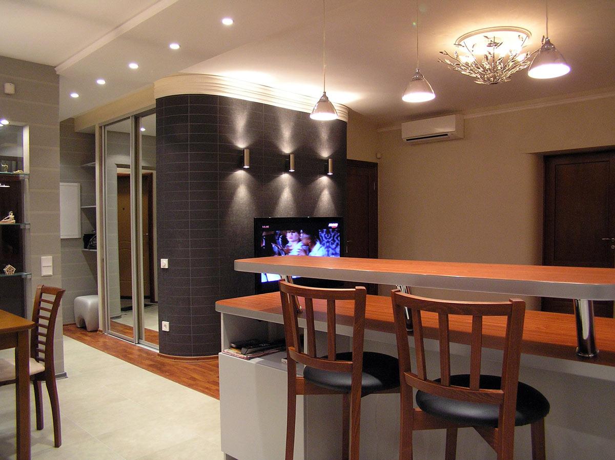Декор и реконструкция интерьера кухни-гостиной, кабинета и спальни в квартире на ул. Генкина.