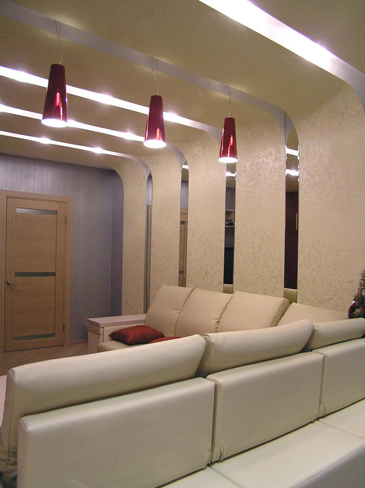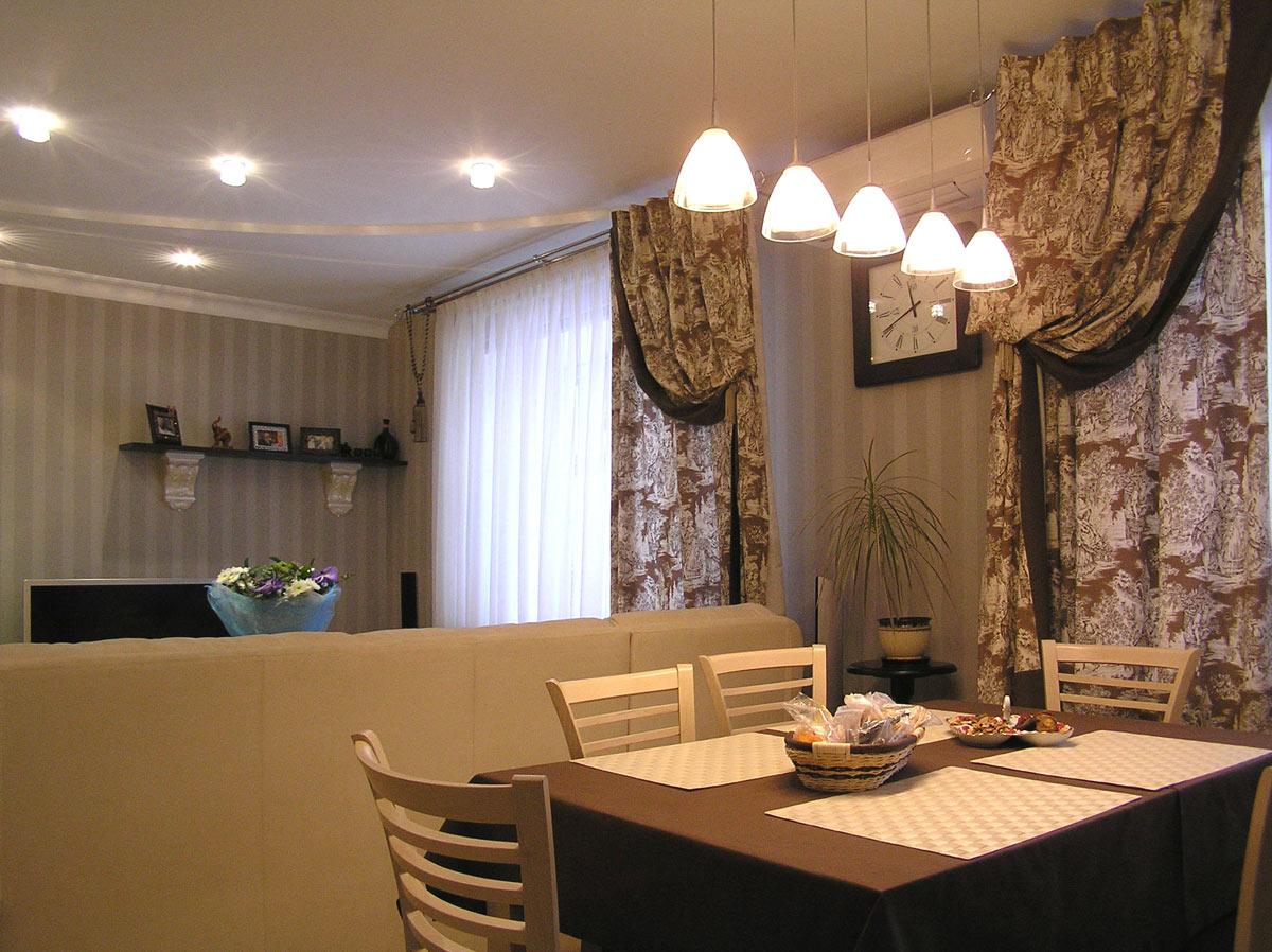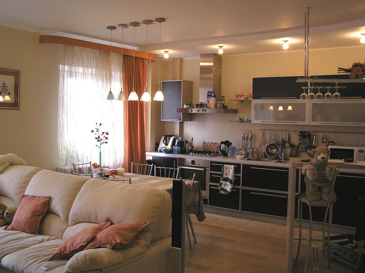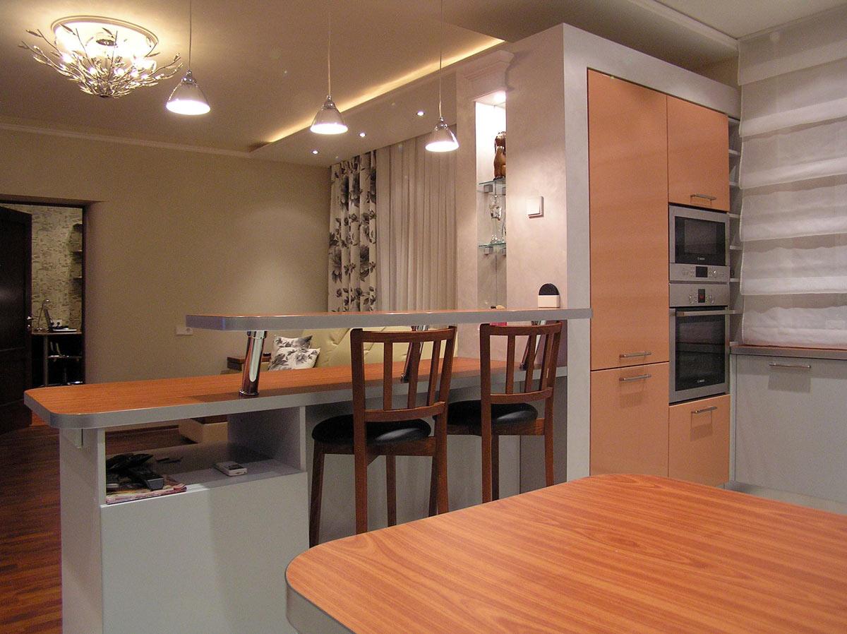 Декор и реконструкция интерьера кухни-гостиной, кабинета и спальни в квартире на ул. Генкина.