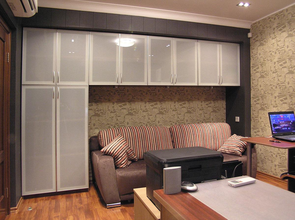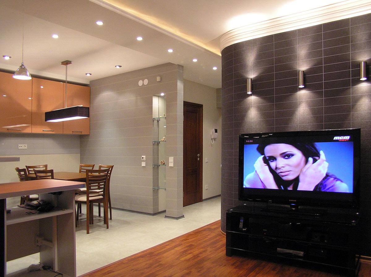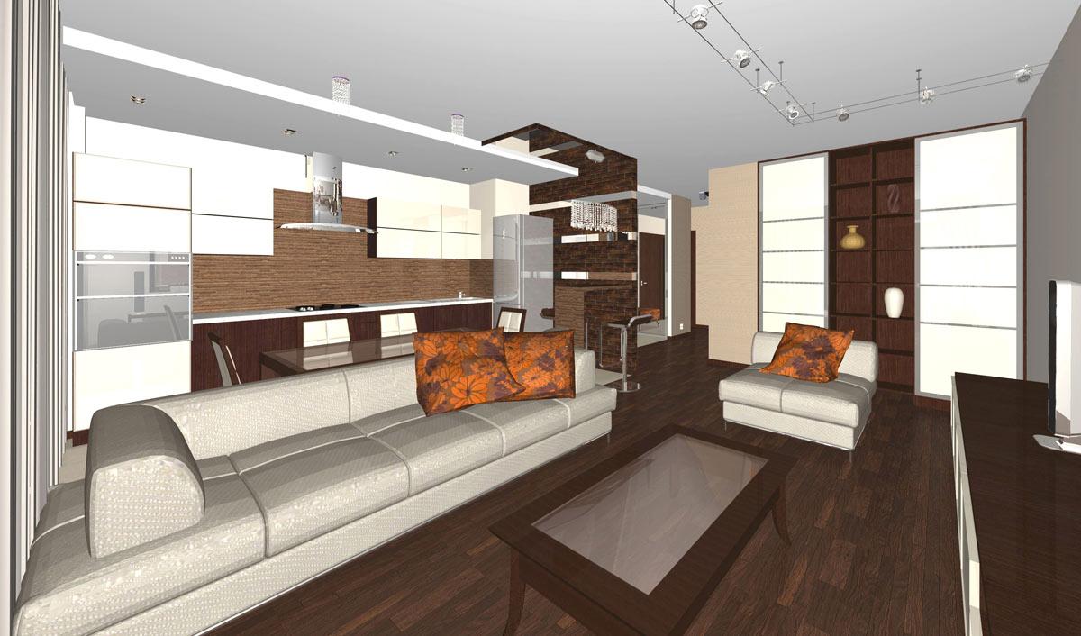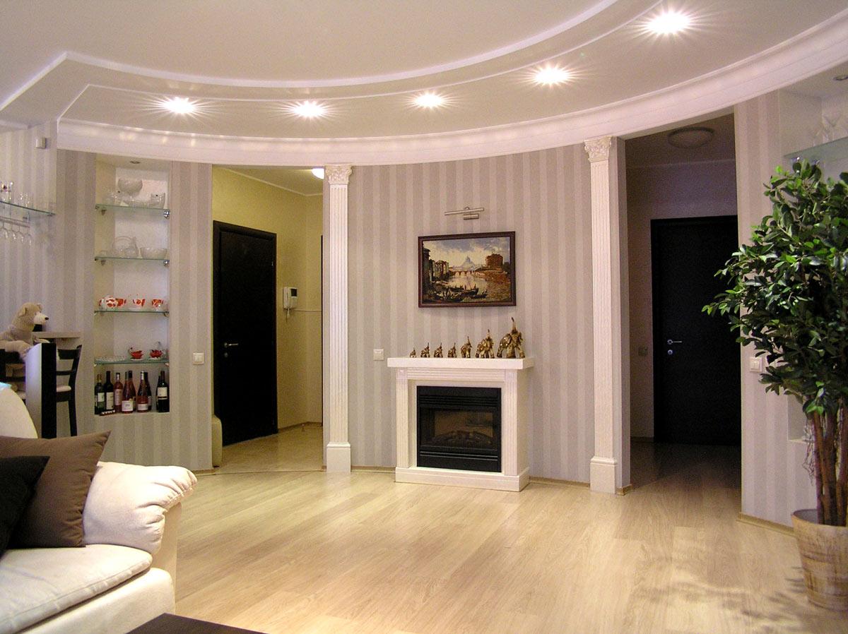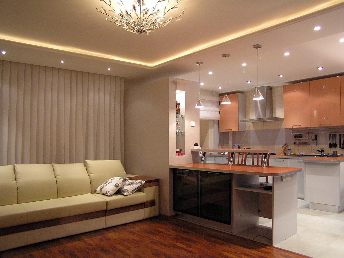 Декор и реконструкция интерьера кухни-гостиной, кабинета и спальни в квартире на ул. Генкина.